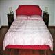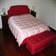 Letto e panchetta realizzati con tessuto classico operato. Trapunta realizzata con tessuto rasatello lucido operato