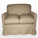 Divanetto due posti con poltroncina a schienale fisso e cuscini seduta in piuma rifiniti con catetino.